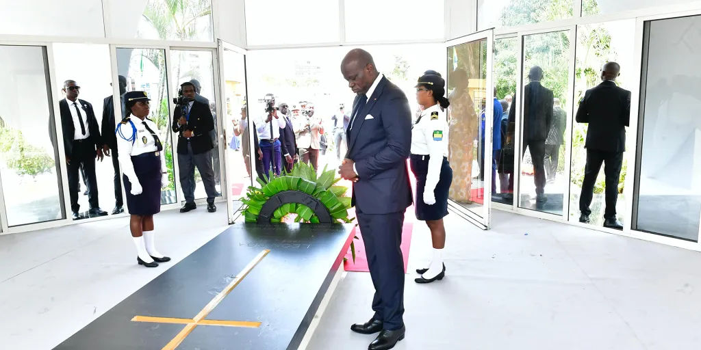 Selon les sources officielles, c’est en présence des Vice-Présidents de la République et du gouvernement, des membres du Gouvernement et de la famille de l’illustre disparu, que le Chef de l’État s’est recueilli et a procédé au dépôt d’une gerbe de fleurs au mausolée Léon MBA, premier Président du Gabon.